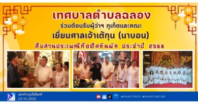 เทศบาลตำบลฉลอง ร่วมต้อนรับผู้ว่าฯ ภูเก็ตและคณะ เยี่ยมศาลเจ้าเต้กุน (นาบอน) สืบสานประเพณีถือศีลกินผัก ประจำปี 2568