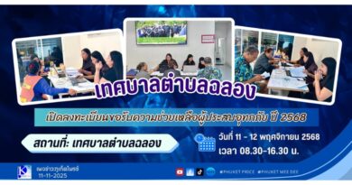 เทศบาลตำบลฉลอง เปิดลงทะเบียนขอรับความช่วยเหลือ ผู้ประสบอุทกภัย ปี 2568
