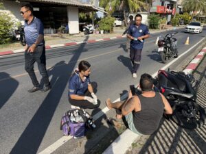 กู้ชีพฉลองเข้าช่วยเหลือเหตุรถจักรยานยนต์เฉี่ยวชนรถยนต์ หน้าหมู่บ้านบ้านปาริชาต ปลอดภัยทั้งสองฝ่าย