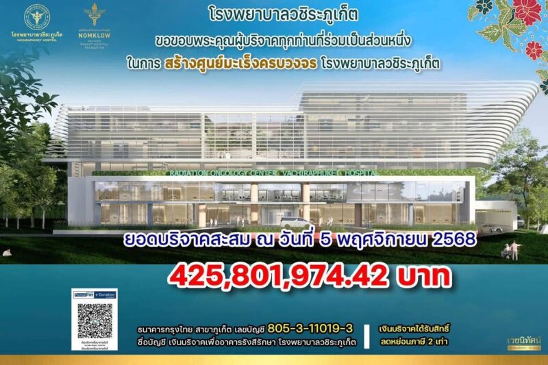 ชื่อบัญชี : เงินบริจาคเพื่ออาคารรังสีรักษา โรงพยาบาลวชิระภูเก็ต