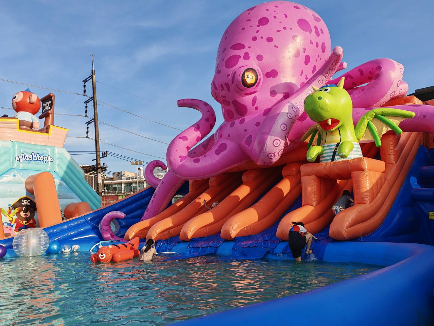🏴☠️🐙 with the giant inflatable water park, 𝐒𝐩𝐥𝐚𝐬𝐡𝐭𝐨𝐩𝐢𝐚! 🌊Embark on an exciting journey through thrilling water slides 🛝💦, conquer fun-filled obstacle courses, and take on the massive inflatable castle in the middle of the water 🌊 Don’t miss out! Cool, splashy fun with bouncy, splash-tastic slides 🏊🏻♀️ is waiting for kids to enjoy non-stop, only here! 🏴☠️