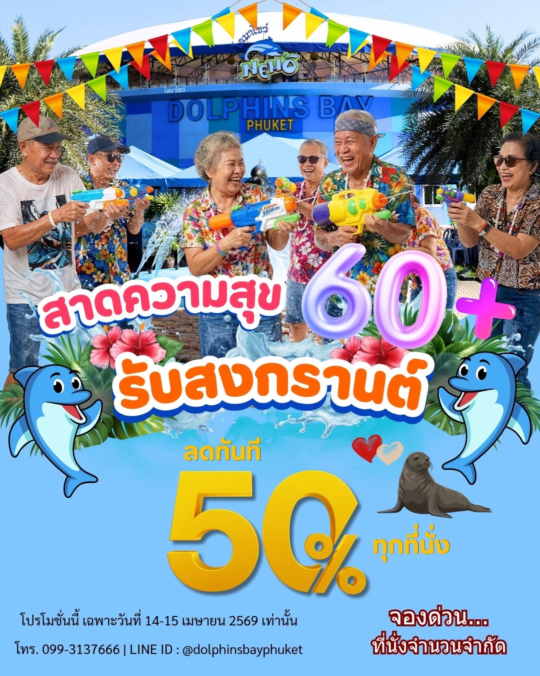 สงกรานต์ปีนี้ พาวัยเก๋ามา “สาดความสุข” ให้หัวใจชุ่มฉ่ำ 🐬 ชวนคุณพ่อคุณแม่ คุณตาคุณยาย มาหัวเราะให้ลั่นไปกับความน่ารักของน้องโลมาและแมวน้ำแสนรู้