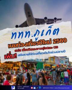 ททท. ภูเก็ต เผยท่องเที่ยวปีใหม่ 2569 สดใส เที่ยวบินตรงจากยุโรปและ CIS เพิ่ม เสริมรายได้ท่องเที่ยวเติบโตช่วงปลายปี