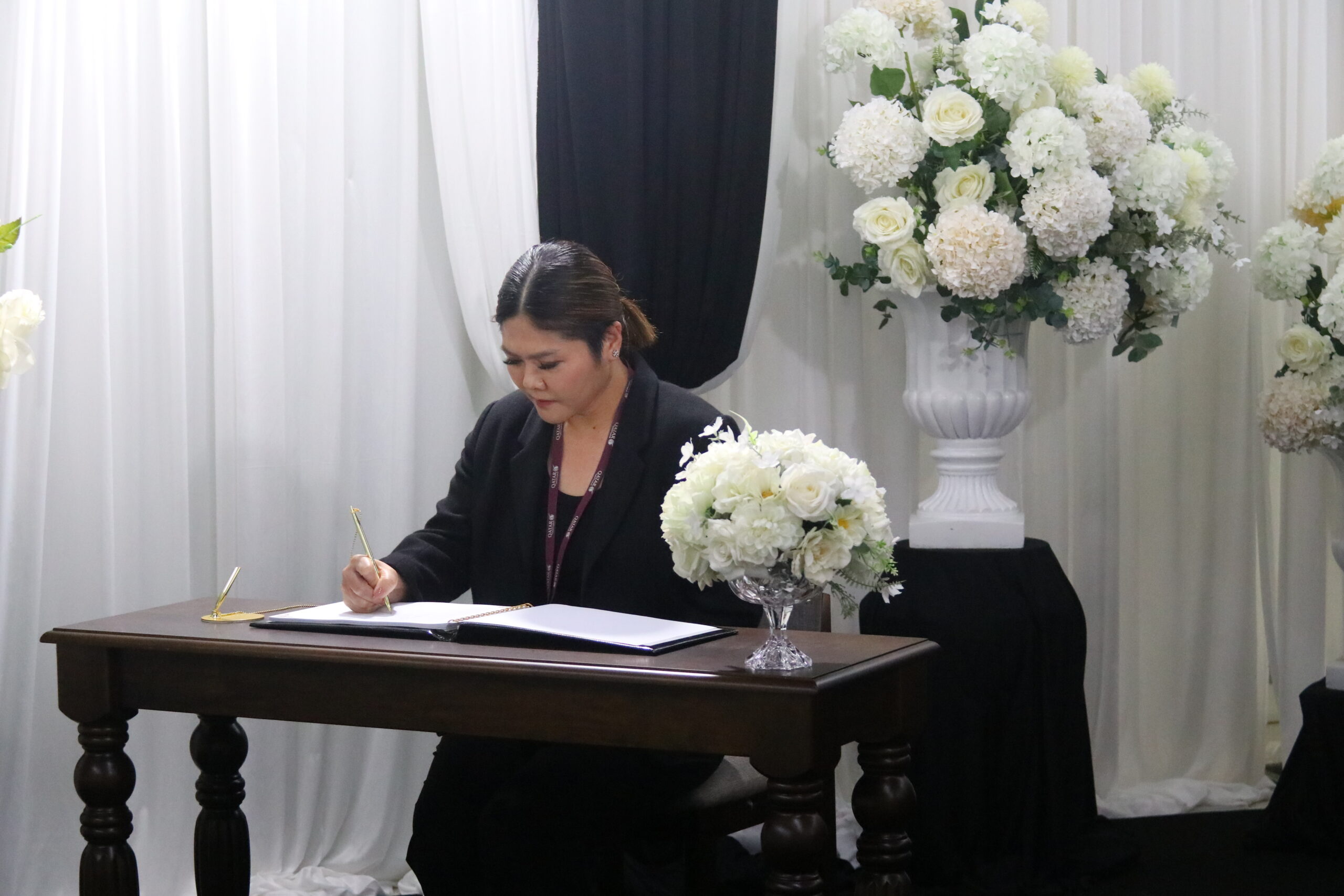 เมื่อประธานในพิธีเดินทางถึงและเข้ายืนประจำจุดที่กำหนดแล้ว ได้นำผู้เข้าร่วมพิธีทั้งหมดถวายความเคารพเบื้องหน้าพระฉายาลักษณ์ฯ โดยประธานในพิธีหมอบกราบ และผู้เข้าร่วมพิธีที่เป็นผู้ชายโค้งคำนับ ผู้หญิงถอนสายบัว จากนั้นประธานในพิธีและผู้ร่วมพิธียืนสงบนิ่งเป็นเวลา 1 นาที ก่อนที่ผู้อำนวยการท่าอากาศยานภูเก็ต จะกล่าวคำปฏิญาณตนแสดงความจงรักภักดี ต่อมา ผู้เข้าร่วมพิธีได้ถวายความเคารพเบื้องหน้าพระฉายาลักษณ์ฯ อีกครั้ง ก่อนที่จะร่วมลงนามถวายความไว้อาลัยตามลำดับ ซึ่งพิธีทั้งหมดเสร็จสิ้นในเวลา 09.30 น. การจัดพิธีในครั้งนี้แสดงให้เห็นถึงความพร้อมเพรียงและความมุ่งมั่นในการแสดงความจงรักภักดีของบุคลากรต่อสถาบันพระมหากษัตริย์