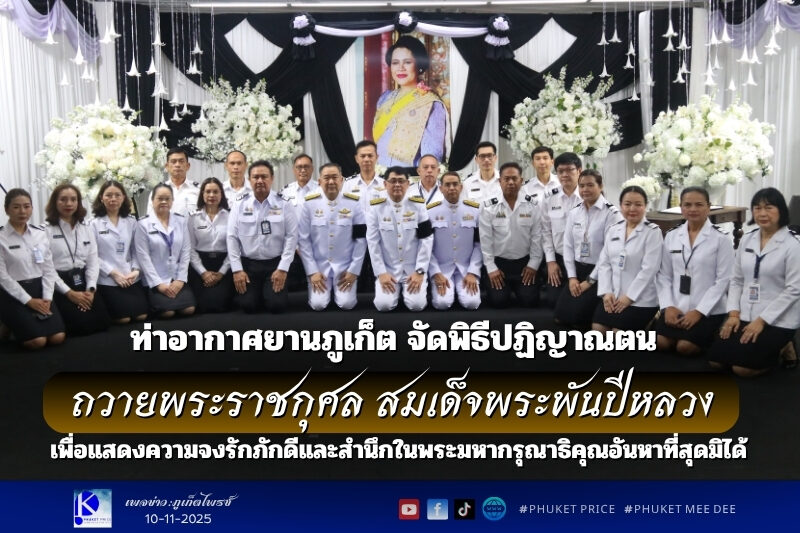 ท่าอากาศยานภูเก็ต จัดพิธีปฏิญาณตน ถวายพระราชกุศล สมเด็จพระพันปีหลวง เพื่อแสดงความจงรักภักดีและสำนึกในพระมหากรุณาธิคุณอันหาที่สุดมิได้