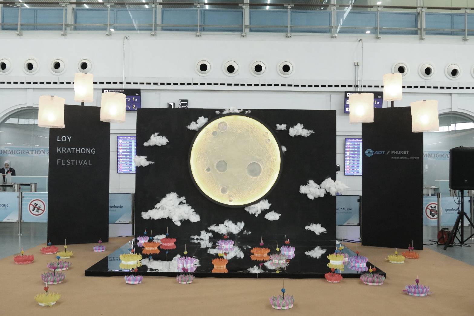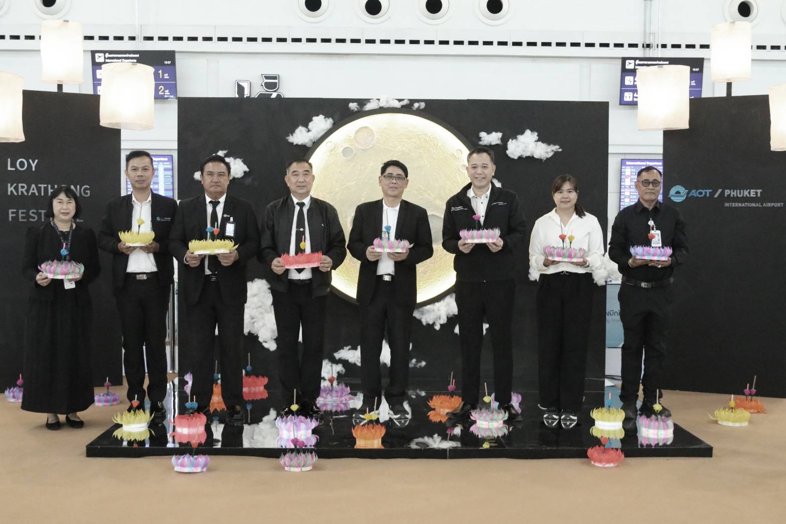 วันที่ 5 พ.ย.68 เวลา 13.30 น. ทภก. จัดกิจกรรมวันลอยกระทงประจำปี 2568 เพื่อสืบสานวัฒนธรรมไทย และสร้างความประทับใจให้กับนักท่องเที่ยวที่เดินทางมาท่องเที่ยวจังหวัดภูเก็ต โดยมีนายมนต์ชัย ตะโหนด ผู้อำนวยการท่าอากาศยานภูเก็ต (ผภก.) และ นายอุทัย ศิริ ผู้เชี่ยวชาญ 9 ทอท. รักษาการ รองผู้อำนวยการท่าอากาศยานภูเก็ต สายสนับสนุนธุรกิจ (ผชช.9 รักษาการ รภก.(สธ.)) พร้อมด้วยผู้บริหาร ทภก. ร่วมมอบของที่ระลึกให้แก่ผู้โดยสาร ณ โถงผู้โดยสารขาออก อาคารผู้โดยสารระหว่างประเทศ ทภก.
