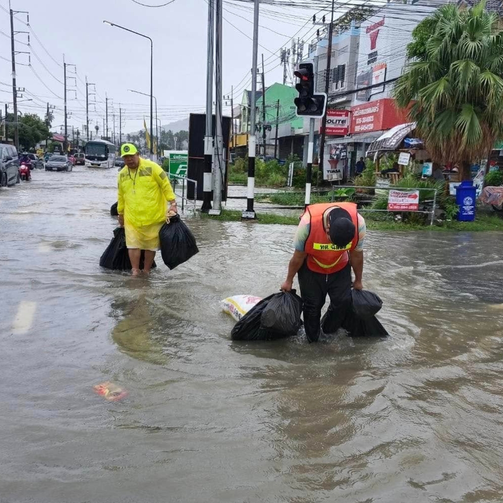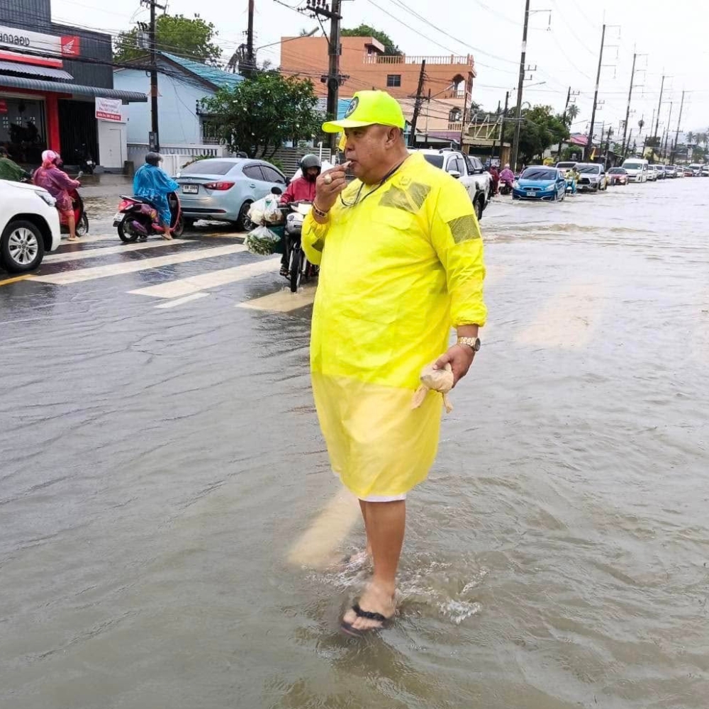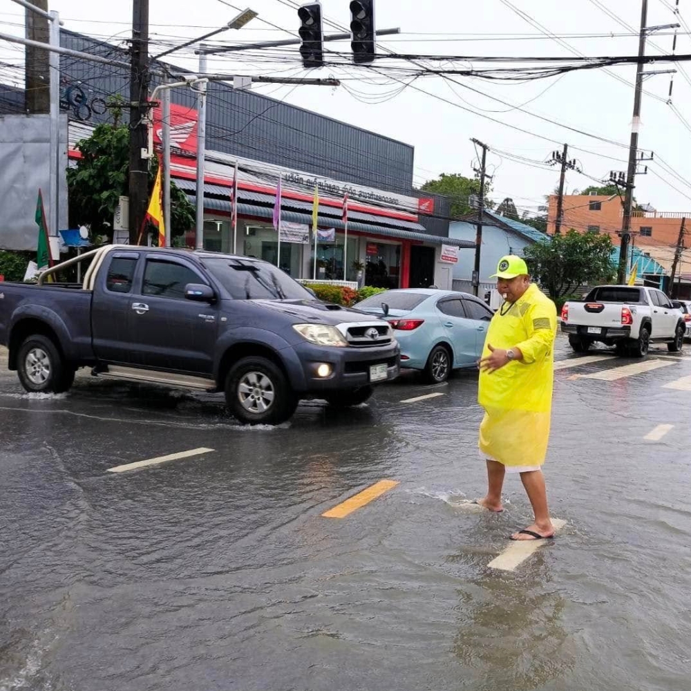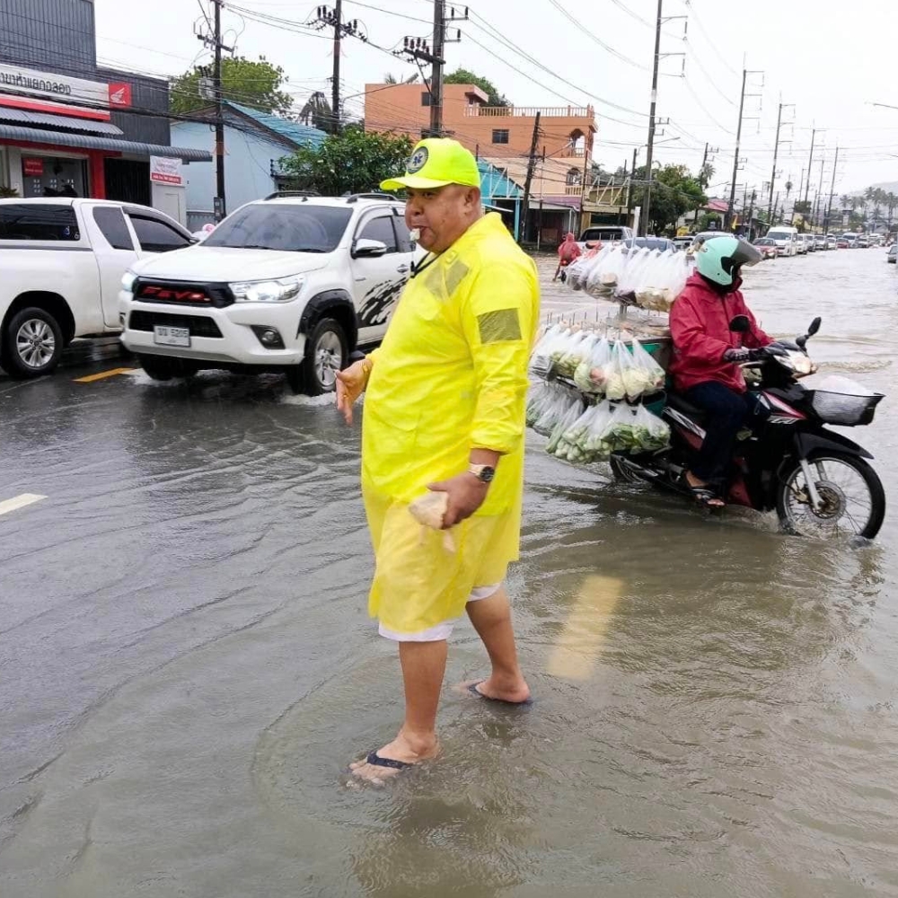 “นายกสำราญลงพื้นที่ฉลองด่วน! ลุยน้ำโบกรถช่วยประชาชนกลางฝนหนัก”