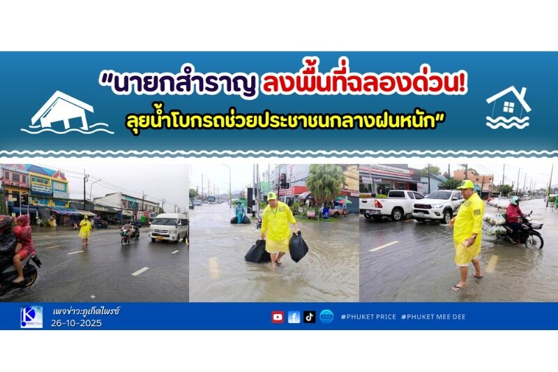 นายกสำราญ จินดาพล นายกเทศมนตรีตำบลฉลอง ลงพื้นที่เร่งด่วนตรวจจุดน้ำท่วม หลังฝนตกหนักต่อเนื่องในพื้นที่ฉลอง พร้อมโบกรถอำนวยความสะดวกประชาชน และสั่งเจ้าหน้าที่เร่งระบายน้ำ ดูแลความปลอดภัยประชาชนตลอด 24 ชั่วโมง
