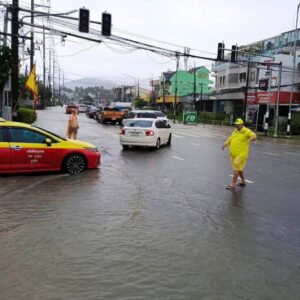 “นายกสำราญลงพื้นที่ฉลองด่วน! ลุยน้ำโบกรถช่วยประชาชนกลางฝนหนัก”