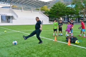 นายก อบจ.ภูเก็ต ลงพื้นที่เยี่ยมให้กำลังใจนักเรียนฝึกซ้อมฟุตบอล ร.ร.บ้านบางเทา