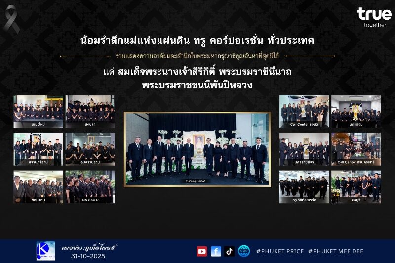 กรุงเทพฯ 31 ตุลาคม 2568 – บมจ.ทรู คอร์ปอเรชั่น โดย นายซิกเว่ เบรกเก้ ประธานคณะผู้บริหารกลุ่ม นำคณะผู้บริหารและพนักงานทรู คอร์ปอเรชั่น ทั่วประเทศ ร่วมพิธีแสดงความอาลัย เบื้องหน้าพระฉายาลักษณ์ สมเด็จพระนางเจ้าสิริกิติ์ พระบรมราชินีนาถ พระบรมราชชนนีพันปีหลวง ณ อาคารทรู ทาวเวอร์ ถนนรัชดาภิเษก ด้วยสำนึกในพระมหากรุณาธิคุณอันหาที่สุดมิได้ของ “พระมารดาแห่งแผ่นดิน” ผู้ทรงเป็นพระมิ่งขวัญและร่มโพธิ์ร่มไทรของปวงชนชาวไทย พระองค์ทรงเปี่ยมด้วยพระเมตตา ทรงบำเพ็ญพระราชกรณียกิจนานัปการเพื่อประโยชน์สุขของพสกนิกร จึงทรงเป็นศูนย์รวมแห่งความรัก ความศรัทธา และความผูกพันของคนไทยทั้งชาติ อันเป็นแรงบันดาลใจให้ทุกคนมุ่งมั่นสืบสานเจตนารมณ์แห่งความดีงามและดำเนินรอยตามเบื้องพระยุคลบาทสืบไป