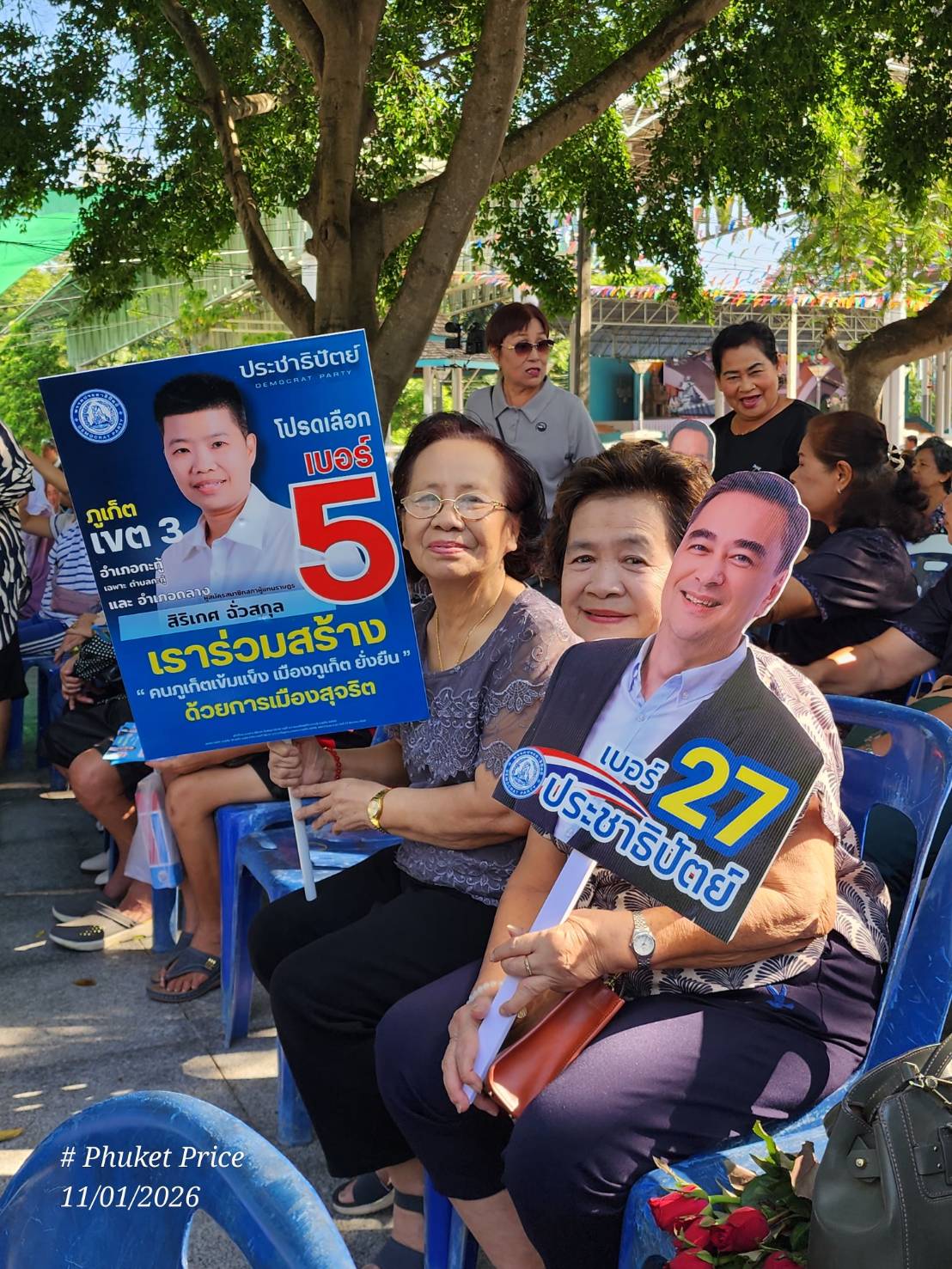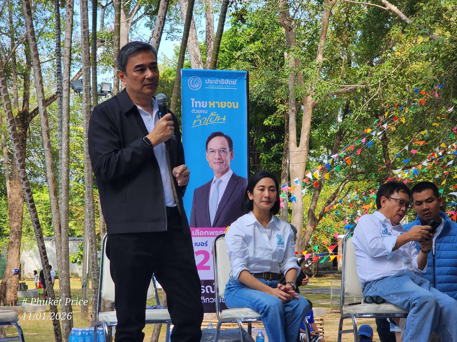 วันที่ 11 มกราคม 2569 เวลา 10.00 น. พรรคประชาธิปัตย์ นำโดย นายอภิสิทธิ์ เวชชาชีวะ พร้อมทีมแคนดิเดตนายกรัฐมนตรี นายกรณ์ จาติกวณิช และ ดร.การดี เลียวไพโรจน์ ลงพื้นที่จังหวัดภูเก็ต ภายใต้วาระ “ภาคใต้หายจน” เพื่อพบปะรับฟังปัญหาและนำเสนอนโยบายแก้ไขปัญหาเชิงโครงสร้างให้กับประชาชน กิจกรรมจัดขึ้น ณ สวนศรีภูวนาถ อำเภอเมืองภูเก็ต บรรยากาศเป็นไปอย่างคึกคัก มีผู้สมัคร ส.ส.พรรคประชาธิปัตย์ทั้ง 3 เขตในจังหวัดภูเก็ต รวมถึงจังหวัดพังงา เข้าร่วมพร้อมเปิดเวทีปราศรัยช่วยผู้สมัคร