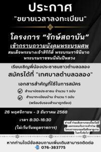 ประกาศ ขยายเวลาลงทะเบียน