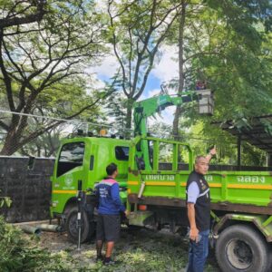 ฝ่ายตัดกิ่งไม้-รถกระเช้าเขียว ลงพื้นที่ดำเนินการตัดแต่งกิ่งไม้