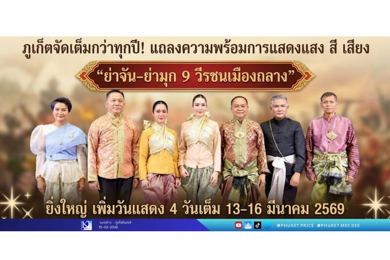 ภูเก็ตจัดเต็มกว่าทุกปี! แถลงความพร้อมการแสดงแสง สี เสียง “ย่าจัน–ย่ามุก 9 วีรชนเมืองถลาง” ยิ่งใหญ่ เพิ่มวันแสดง 4 วันเต็ม 13–16 มีนาคม 2569