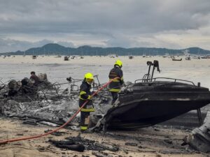 ผู้การฯสาม สั่งชุดสอบเร่งหาสาเหตุไฟไหม้เรือสปีดโบ๊ทท่าเทียบเรืออ่าวฉลอง ความเสียหายกว่า 20 ลำ ยังไม่ฟันธงสาเหตุ