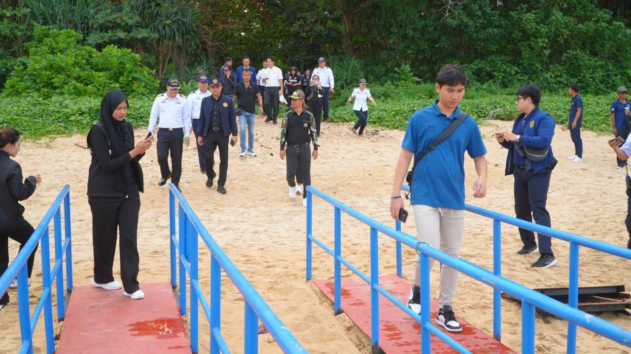 โดยมี นายอดูลย์ ระลึกมูล ผู้อำนวยการสำนักงานเจ้าท่าภูมิภาคสาขาภูเก็ต, นายปภาวิน หยังหลัง หัวหน้าอุทยานแห่งชาติสิรินาถ จังหวัดภูเก็ต, นางลลิตา มณีศรี นายกเทศมนตรีเมืองป่าตอง, นายมนต์ทวี หงษ์หยก ประธานสภาอุตสาหกรรมจังหวัดภูเก็ต, นายไวทฑ อุปัติศฤงค์ ประธานกรรมการบริหารบริษัทภูเก็ตพัฒนาเมือง ตลอดจนเจ้าหน้าที่ท่าอากาศยานนานาชาติภูเก็ต เจ้าหน้าที่ประมง ภาคเอกชน และหน่วยงานที่เกี่ยวข้องในพื้นที่ ร่วมลงพื้นที่