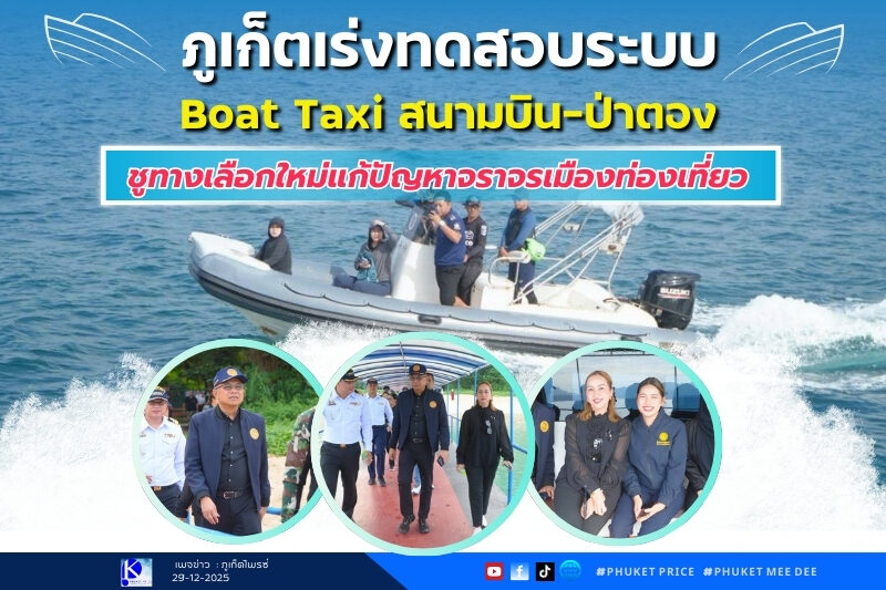 ภูเก็ตเร่งทดสอบระบบ Boat Taxi สนามบิน–ป่าตอง ชูทางเลือกใหม่แก้ปัญหาจราจรเมืองท่องเที่ยว