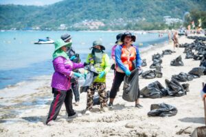 ลงพื้นที่ตรวจสอบและติดตามการปฏิบัติงานเก็บสาหร่ายบริเวณหาดป่าตอง