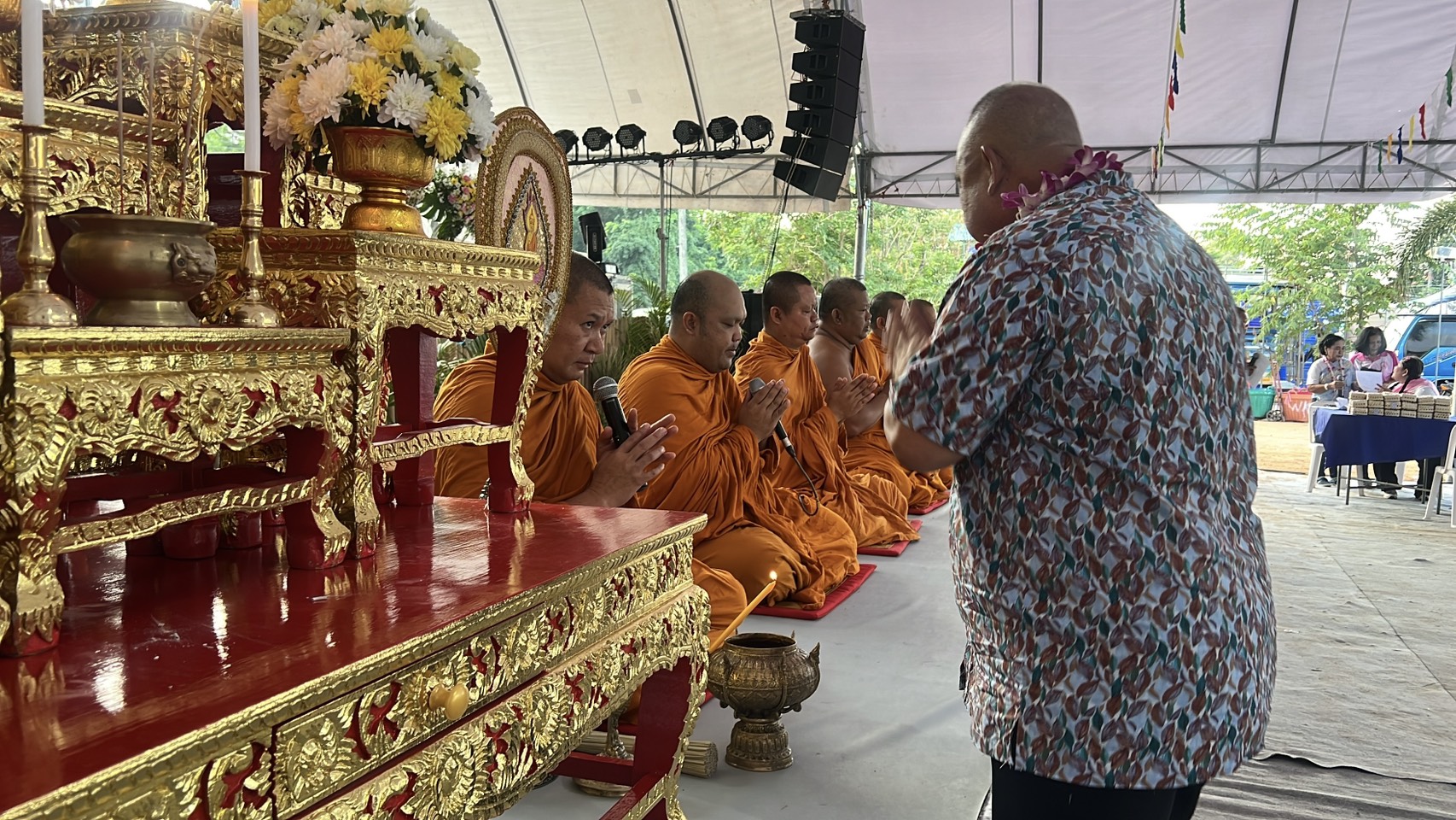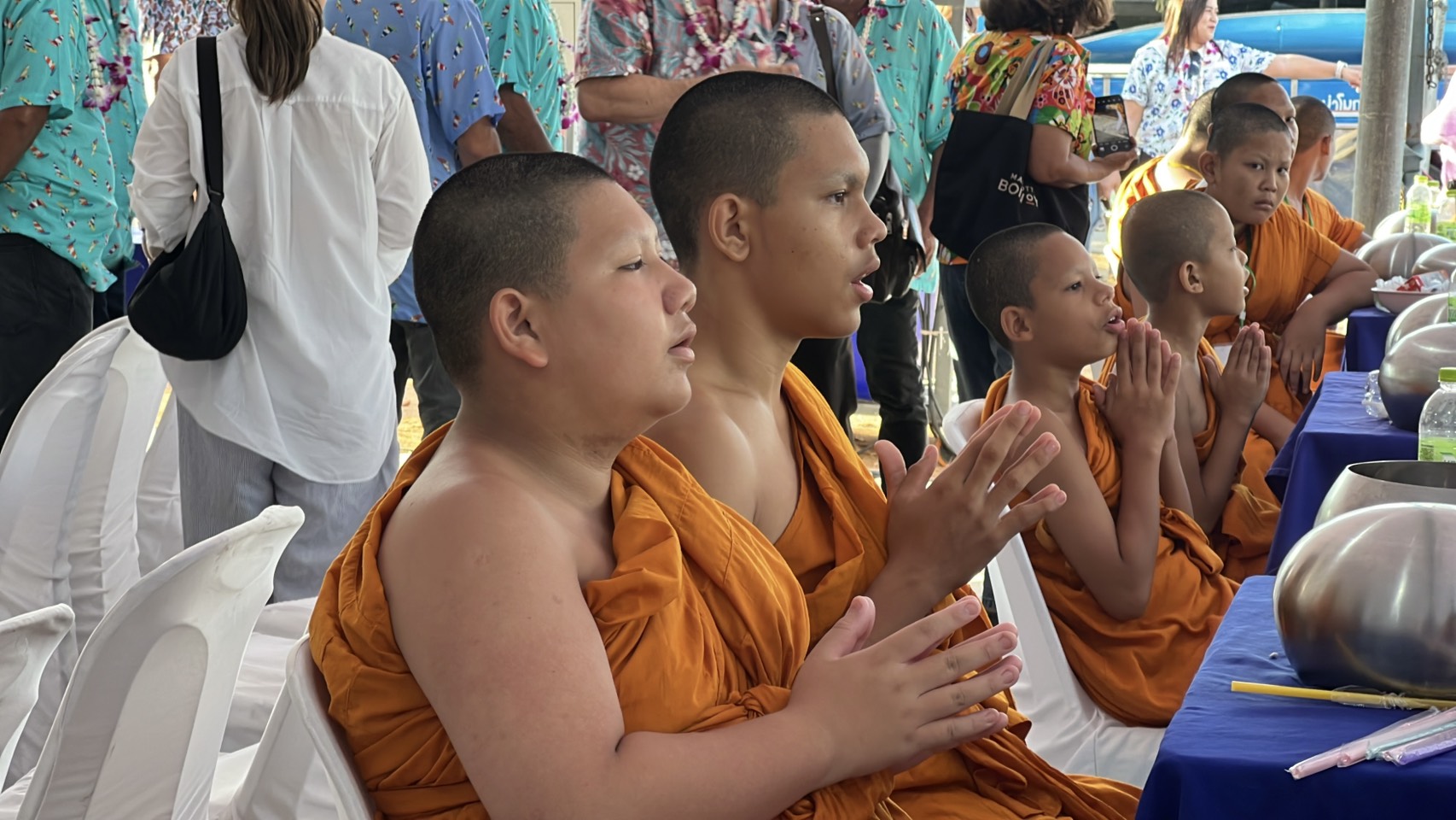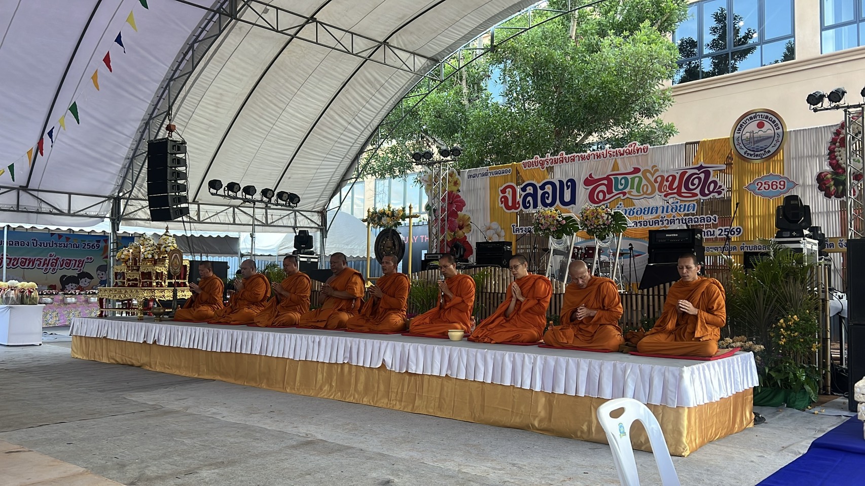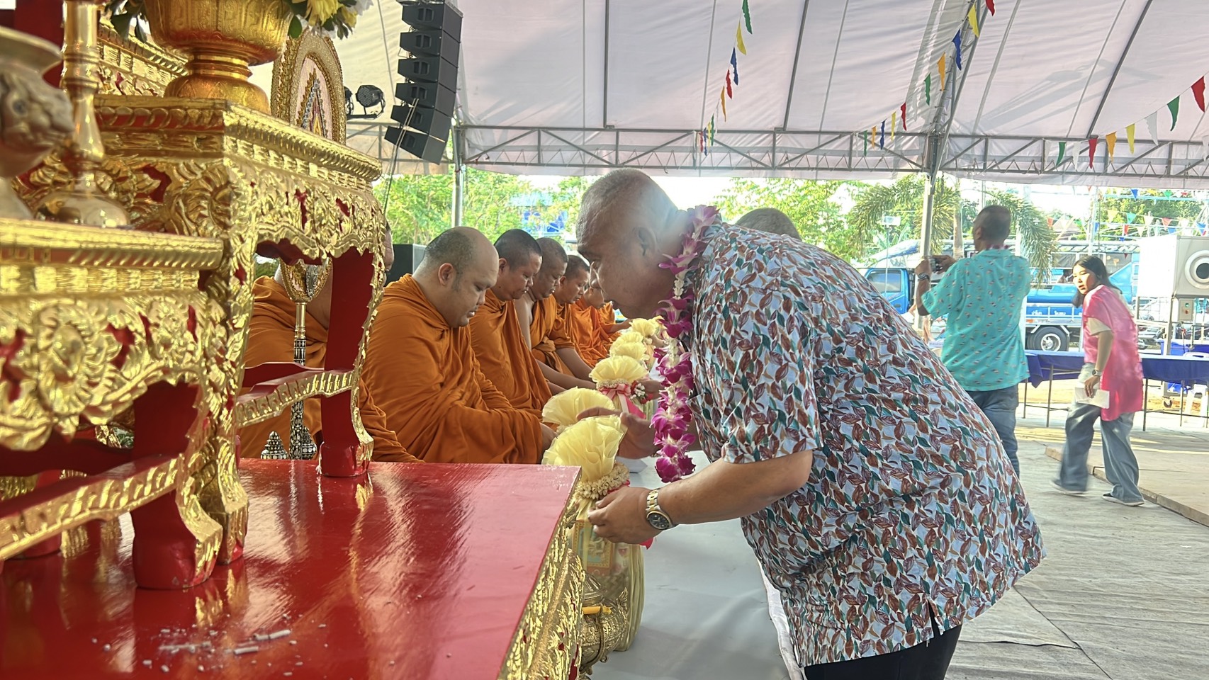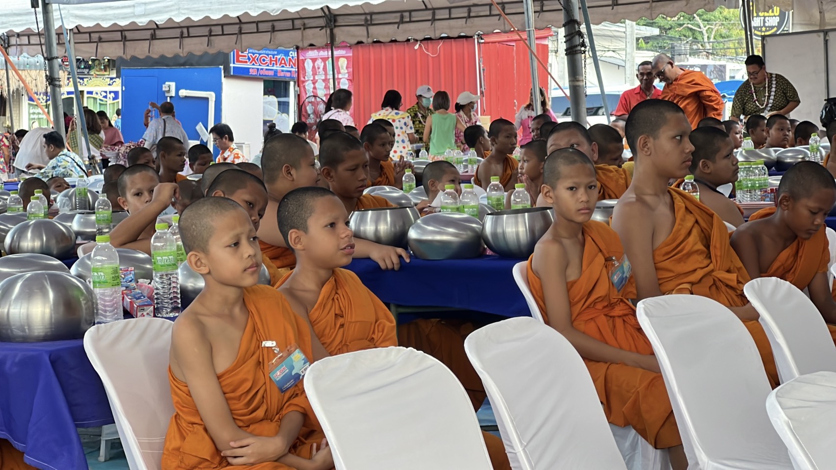 บรรยากาศช่วงเช้าเริ่มต้นด้วยพิธีตักบาตรข้าวสารอาหารแห้ง พระภิกษุสงฆ์และสามเณรกว่า 100 รูป จากวัดในพื้นที่ อาทิ วัดลัฏฐิวนาราม วัดสิริสีลวนาราม วัดไชยธาราม และวัดมงคลนิมิตรพระอารามหลวง เดินบิณฑบาตตลอดแนวซอยตาเอียด สร้างความเป็นสิริมงคลแก่ผู้ร่วมงาน