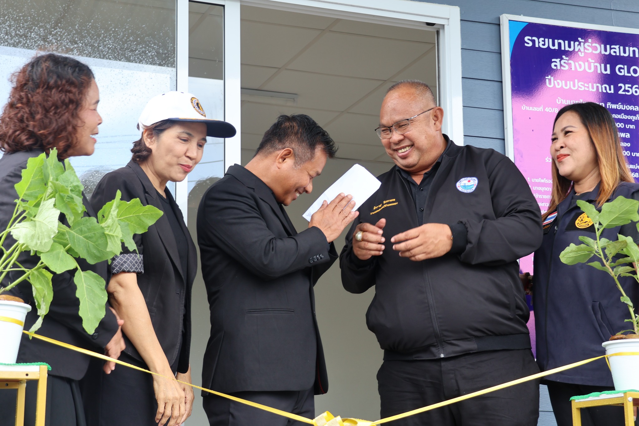 พร้อมด้วยสมาชิกสภาเทศบาล หัวหน้าส่วนราชการ และเจ้าหน้าที่เทศบาล เข้าร่วมพิธีมอบบ้านในโครงการ “ห่วงใย จากใจ GLO” ประจำปี 2568