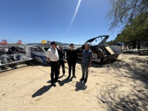 เทศบาลตำบลฉลองหารือแนวทางรื้อกู้ซากเรือเหตุเพลิงไหม้ บริเวณหน้าหาดอ่าวฉลอง