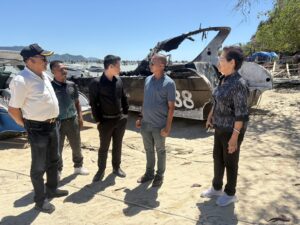 เทศบาลตำบลฉลองหารือแนวทางรื้อกู้ซากเรือเหตุเพลิงไหม้ บริเวณหน้าหาดอ่าวฉลอง