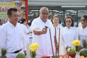 เทศบาลตำบลฉลอง ตั้งโต๊ะรับพระ ในพิธีแห่พระ “อิ้วเก้ง” ศาลเจ้ากวนอู บ้านนาบอน