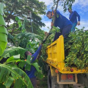เทศบาลตำบลฉลอง ลงพื้นที่ดำเนินการ ตัดแต่งกิ่งไม้ริมกำแพงวัดฉลอง