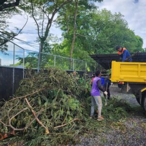 เทศบาลตำบลฉลอง ลงพื้นที่ดำเนินการ ตัดแต่งกิ่งไม้ริมกำแพงวัดฉลอง