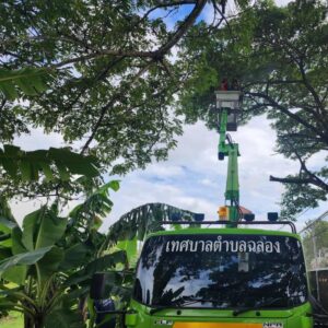 เทศบาลตำบลฉลอง ลงพื้นที่ดำเนินการ ตัดแต่งกิ่งไม้ริมกำแพงวัดฉลอง