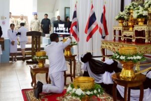 เทศบาลตำบลฉลอง เข้าร่วมพิธีถวายน้ำสรงพระบรมศพ เบื้องหน้าพระฉายาลักษณ์ สมเด็จพระนางเจ้าสิริกิติ์ พระบรมราชินีนาถ พระบรมราชชนนีพันปีหลวง
