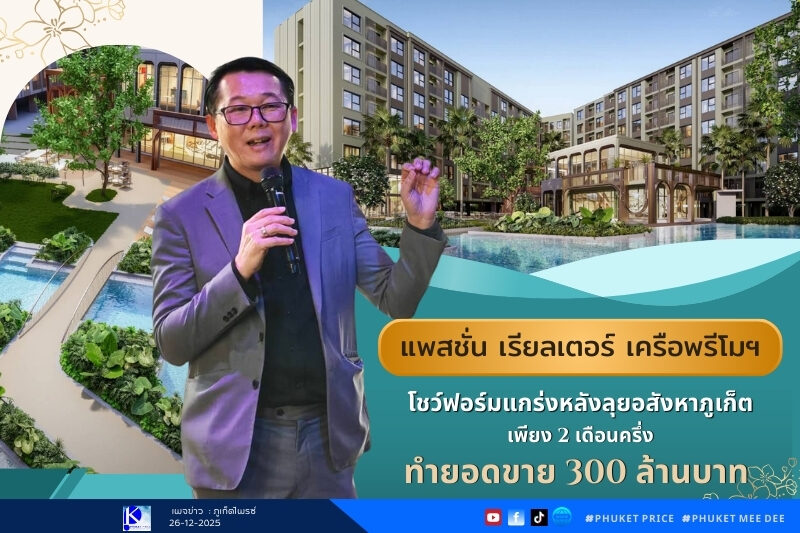 คอนโดมิเนียมใจกลางกระทู้ ติดถนนใหญ่ ซึ่งจะเป็นโครงการพร้อมอยู่โครงการแรกของกลุ่มออริจิ้น พร็อพเพอร์ตี้ ที่พัฒนาในภูเก็ต โดดเด่นด้วยฟังก์ชัน งานดีไซน์ ทำเลและคุณภาพ ซึ่งพร้อมให้ลูกบ้านเข้าอยู่ต้นปี 2569 โชว์ฟอร์มแกร่งเพียง 2 เดือนครึ่งสามารถกวาดยอดขายจากการเป็นตัวแทนขายอสังหาริมทรัพย์ให้โครงการนี้กว่า 300 ล้านบาท