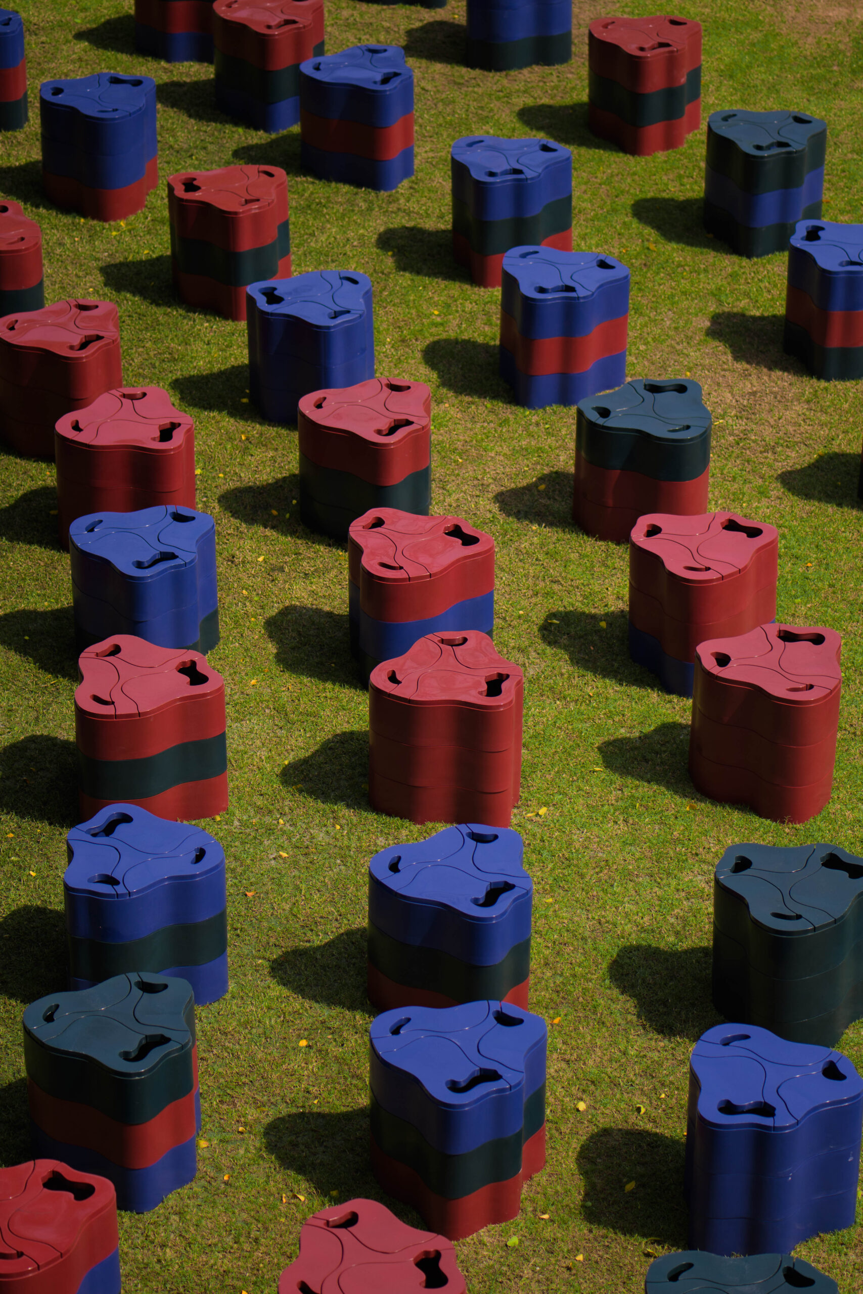ทั้งนี้ ชิ้นงาน Aqua Playground ถูกออกแบบให้มีสีสันที่กลมกลืนกับธรรมชาติ โดยมี 3 สีหลัก น้ำเงิน เขียว และแดงเลือดหมู ที่ผลิตจากแหอวนบริสุทธิ์ 100% โดยได้ความร่วมมือจากโรงงาน UBE ในการพัฒนาสีและคุณสมบัติของวัสดุให้เหมาะสมกับงานดีไซน์ ประติมากรรมนี้จะเป็นสื่อกลางที่ เชื่อมโยงทุกคน ทุกวัยให้ได้เล่นสนุก และเรียนรู้เรื่องความยั่งยืนไปพร้อมกันกับตัวต่อ art piece ชิ้นขนาดยักษ์ ใช้จินตนาการที่ไร้ขอบเขตสร้างสรรค์ผลงานในแบบของตัวเองได้อิสระบนสเปซพื้นที่แห่งแรงบันดาลใจ