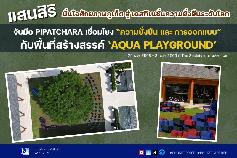 แสนสิริ มั่นใจศักยภาพภูเก็ต สู่ เดสทิเนชั่นความยั่งยืนระดับโลก จับมือ PIPATCHARA เชื่อมโยง “ความยั่งยืน และ การออกแบบ” กับพื้นที่สร้างสรรค์ ‘AQUA PLAYGROUND’ 29 พ.ย. 2568 – 31 ม.ค. 2569 ที่ The Society เชิงทะเล-บางเทา