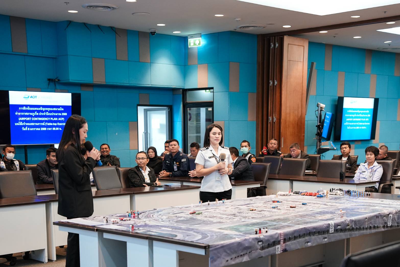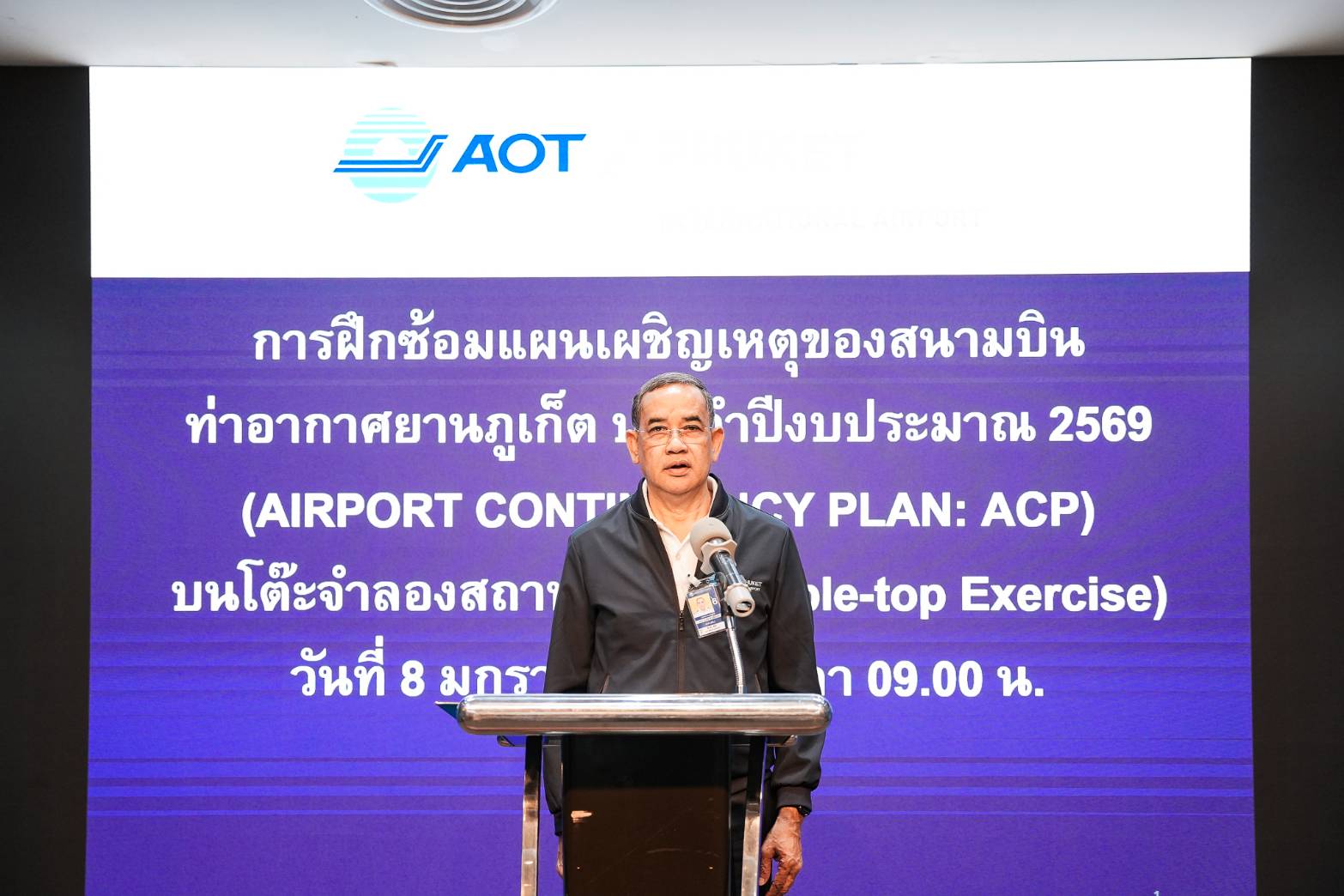 โดยมีนายทวนชัย ตันสุริยะวงศ์ รองผู้อำนวยการท่าอากาศยานภูเก็ต สายปฏิบัติการและบำรุงรักษา (รภก.(ปร.)) เป็นประธานในการฝึกซ้อม เพื่อกำกับทิศทางและสร้างความเข้าใจร่วมกันระหว่างหน่วยงานที่เกี่ยวข้อง