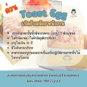 🌿📣ร้าน TOAST EGG เปิดรับสมัครเพื่อนร่วมงานด่วน!