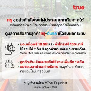📍ทรู ระดมสรรพกำลัง เร่งช่วยผู้ประสบอุทกภัยพี่น้องชาวใต้ ส่งฝูงโดรน 20 ลำเสริมภารกิจ มอบถุงยังชีพ อาหาร–น้ำดื่ม–พาวเวอร์แบงค์ ดูแลการสื่อสารลูกค้าทรู–ดีแทค พร้อมเคียงข้างคนไทย ก้าวข้ามฝ่าวิกฤตครั้งนี้ไปด้วยกัน
