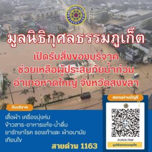 📣🚩มูลนิธิกุศลธรรมภูเก็ต เปิดรับสิ่งของช่วยเหลือผู้ประสบอุทกภัย อำเภอหาดใหญ่ จังหวัดสงขลา