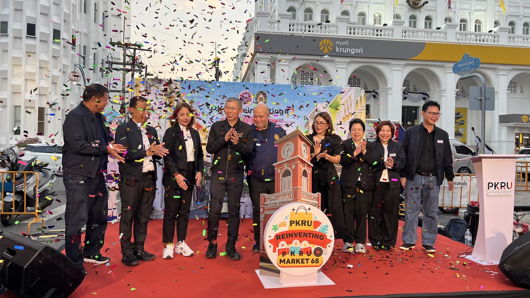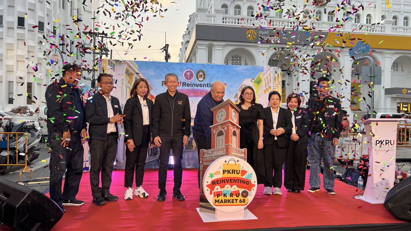 🌿📣วันที่ 1 กุมภาพันธ์ 2569 มหาวิทยาลัยราชภัฏภูเก็ต จัดพิธีเปิดมหกรรมการจำหน่ายสินค้า “ฉลอง แบรนด์” พร้อมประชาสัมพันธ์เส้นทางการท่องเที่ยวเชิงอาหารและสุขภาพ (Gastronomy and Wellness) ภายใต้โครงการ PKRU Reinventing #2 “PKRU Market” ณ ถนนคนเดิน Charter Walking Street เทศบาลนครภูเก็ต โดยมีผู้ช่วยศาสตราจารย์ ดร.หิรัญ ประสารการ อธิการบดีมหาวิทยาลัยราชภัฏภูเก็ต เป็นประธานในพิธี