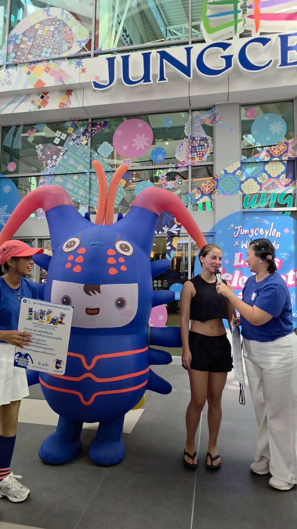 🚩 โดยช่วงเที่ยง “จุ้ง” ออกป่วนศูนย์การค้าจังซีลอน ป่าตอง นักท่องเที่ยวแน่นชมแน่นขนัด! บรรยากาศคึกคักตั้งแต่จุ้งเปิดตัว นักท่องเที่ยวทั้งชาวไทยและต่างชาติพากันแวะชม ถ่ายภาพ และร่วมกิจกรรม “Let’s Celebrate 2026: Eco Wonderland”
