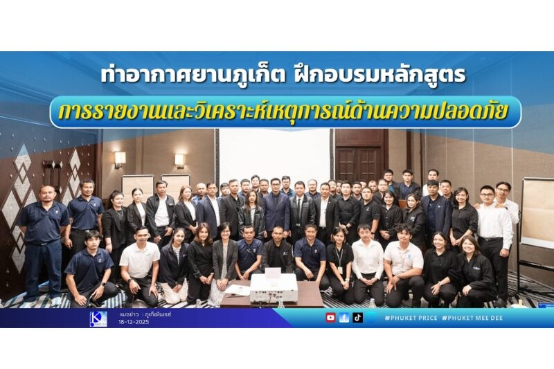 เมื่อเกิดเหตุการณ์ด้านความปลอดภัยของท่าอากาศยาน และเป็นไปตามข้อกำหนดสำนักงานการบินพลเรือนแห่งประเทศไทย ฉบับที่ 22 ว่าด้วยการรายงานเหตุการณ์ ด้านความปลอดภัยในการบินพลเรือน โดยจัดอบรมระหว่างวันที่ 18-19 ธ.ค.68 ในการนี้ มีผู้บริหาร ทภก. พร้อมด้วยพนักงานและลูกจ้าง เข้าร่วมอบรม ณ โรงแรมเจดับบลิว แมริออท ภูเก็ต รีสอร์ท แอนด์ สปา