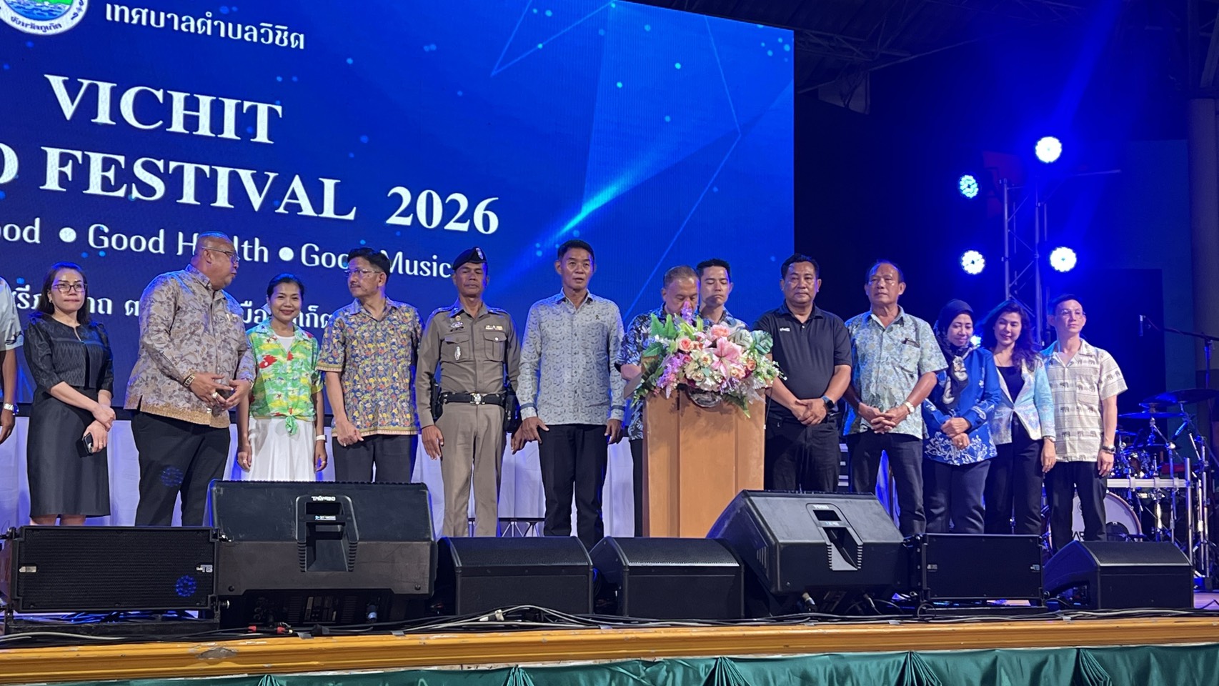 📍 วันที่ 27 มีนาคม 2569 ณ เวทีกลางสวนศรีภูวนารถ ตำบลวิชิต อำเภอเมือง จังหวัดภูเก็ต มีการจัดงาน “มหกรรมอาหารปลอดภัยและโภชนาการเพื่อสุขภาพ ครั้งที่ 19” อย่างยิ่งใหญ่ โดยได้รับเกียรติจาก นายเรวัต อารีรอบ นายกองค์การบริหารส่วนจังหวัดภูเก็ต เป็นประธานในพิธีเปิดงาน ซึ่งภายในพิธีมีผู้เข้าร่วมจากหลายภาคส่วน อาทิ นายกเทศมนตรีตำบลวิชิต, นายกเทศมนตรีตำบลราไวย์, รองนายกเทศมนตรีตำบลรัษฎา, เลขานุการนายกเทศมนตรีนครภูเก็ต, ปลัดเทศบาลเมืองกะทู้, นายกเทศมนตรีตำบลฉลอง, รองนายกเทศมนตรีตำบลฉลอง, ปลัดเทศบาลตำบลฉลอง และ พันตำรวจโทสวัสดิ์ ผลอ่อน สารวัตรป้องกันปราบปราม ทำหน้าที่ชุมชนสัมพันธ์ สถานีตำรวจภูธรวิชิต เข้าร่วมอย่างพร้อมเพรียง