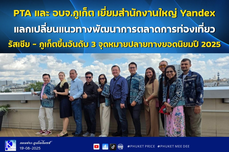 PTA และ อบจ.ภูเก็ต เยี่ยมสำนักงานใหญ่ Yandex แลกเปลี่ยนแนวทางพัฒนาการตลาดการท่องเที่ยวรัสเซีย – ภูเก็ตขึ้นอันดับ 3 จุดหมายปลายทางยอดนิยมปี 2025