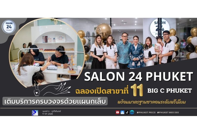 ภายใต้การบริหารของ คุณสุภาภรณ์ ศรีพันธกุล CEO บริษัท เดอะวิสดอม 24 จำกัด ผู้ดูแลทั้ง 11 สาขา SALON24 PHUKET ที่บริหารเองทั้งหมดโดย ไม่ใช่ธุรกิจแฟรนไชส์ สาขาใหม่ที่ Big C Phuket ถือเป็นก้าวสำคัญของแบรนด์ เพราะนอกจากบริการทำผมครบวงจรแล้ว ยังเป็นสาขาแรกที่เปิดให้บริการด้านเล็บควบคู่ไปด้วย โดยเริ่มให้บริการตั้งแต่ วันที่ 16 มกราคม 2569 เป็นต้นไป